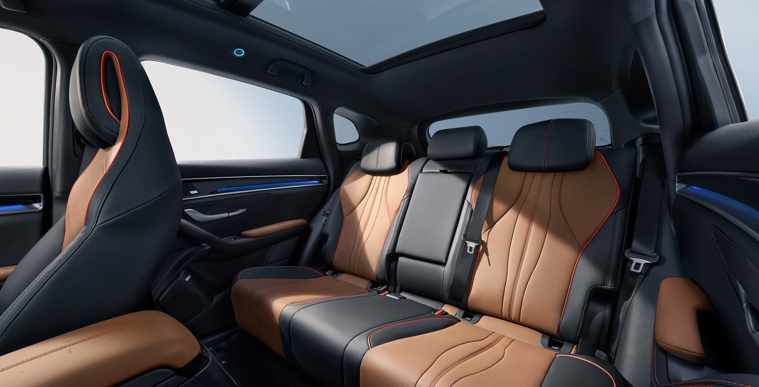 BYD SEAL U DM-i è dotato di sedili posteriori spaziosi con fondo piatto e ampio spazio per le gambe, offrendo maggiore comfort nei lunghi viaggi. La seduta avvolgente garantisce un relax ottimale per tutti i passeggeri.