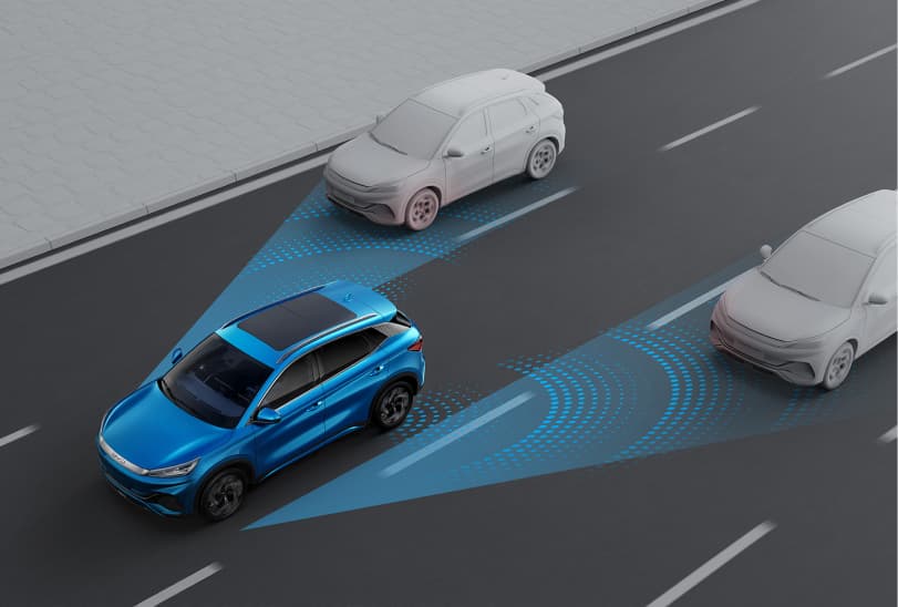 Durante la retromarcia, il radar posteriore monitora in tempo reale gli altri conducenti che si avvicinano al veicolo, avvisando con un segnale acustico o azionando i freni in caso di possibile collisione.